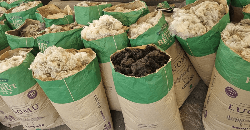 Lampaanvilla sisältää ravinteita, kuten typpeä, jotka hajoavat hitaasti ja ravitsevat maata pitkäkestoisesti.